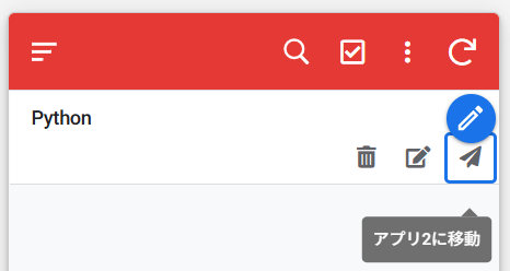 紙飛行機のボタンを押すとアプリ2に移動することができます。